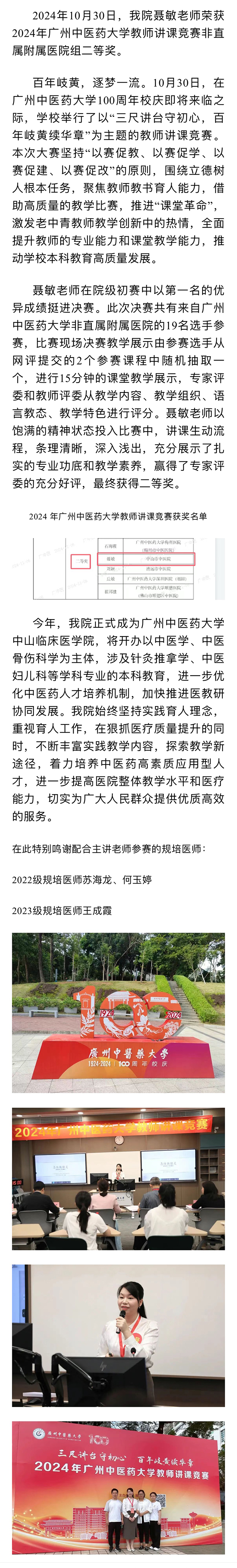 三尺讲台守初心,百年岐黄续华章我院聂敏老师荣获2024年广州中医药大学教…