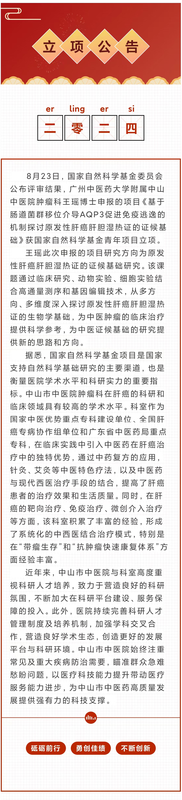 喜讯丨广州中医药大学附属中山中医院王瑶博士获得2024年度国家自然科学基…