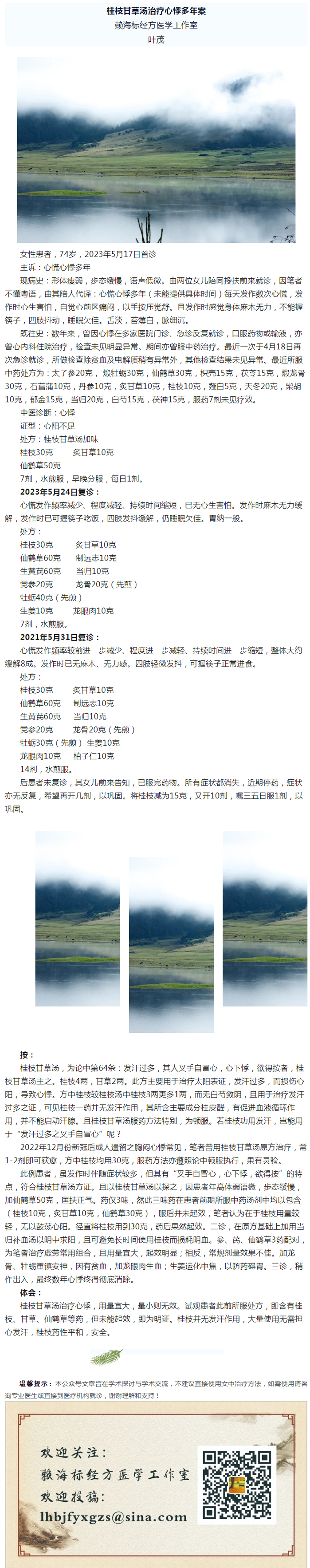 桂枝甘草汤治疗心悸多年案