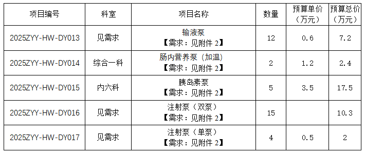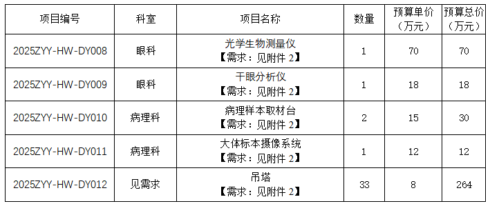 中山市中医院医疗设备采购项目市场调研公告(六)