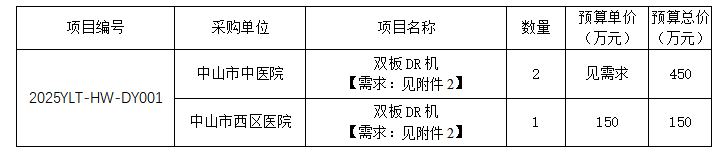 中山市中医院、中山市西区医院双板DR采购项目市场调研公告