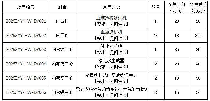 中山市中医院医疗设备采购项目市场调研公告(四)