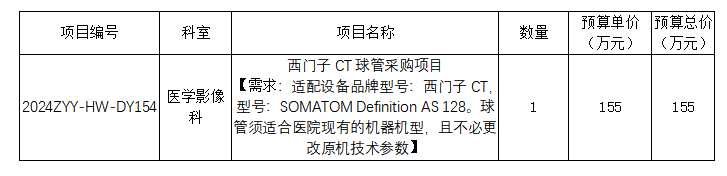 中山市中医院西门子CT球管采购项目(二次)市场调研公告