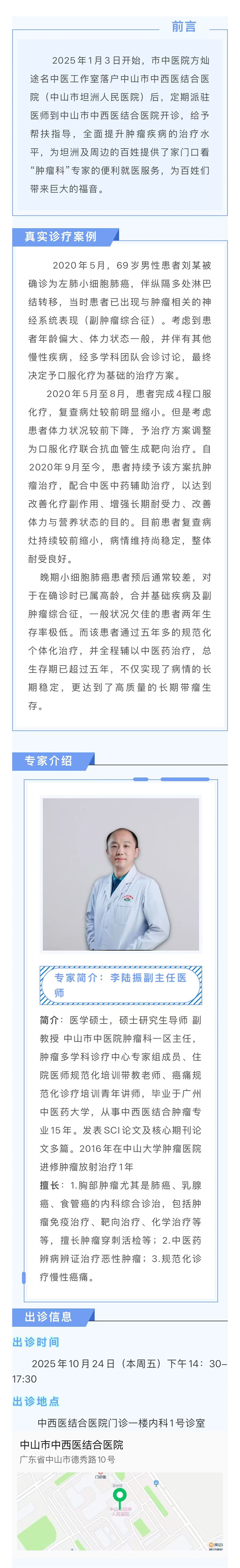 【医讯】10月24日本周五下午肿瘤科李陆振副主任医师赴市中西医结合医院坐…