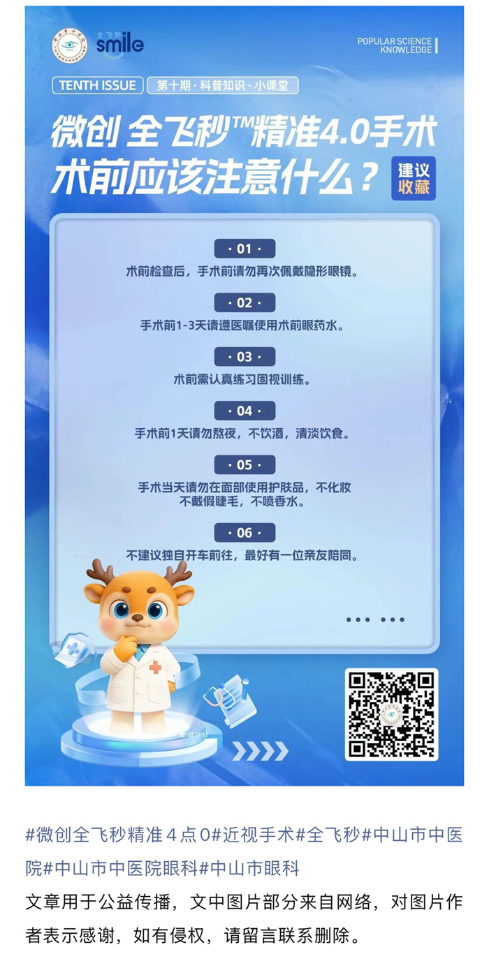 在中山市中医院做微创 全飞秒™精准4.0手术,术前应该注意什么?