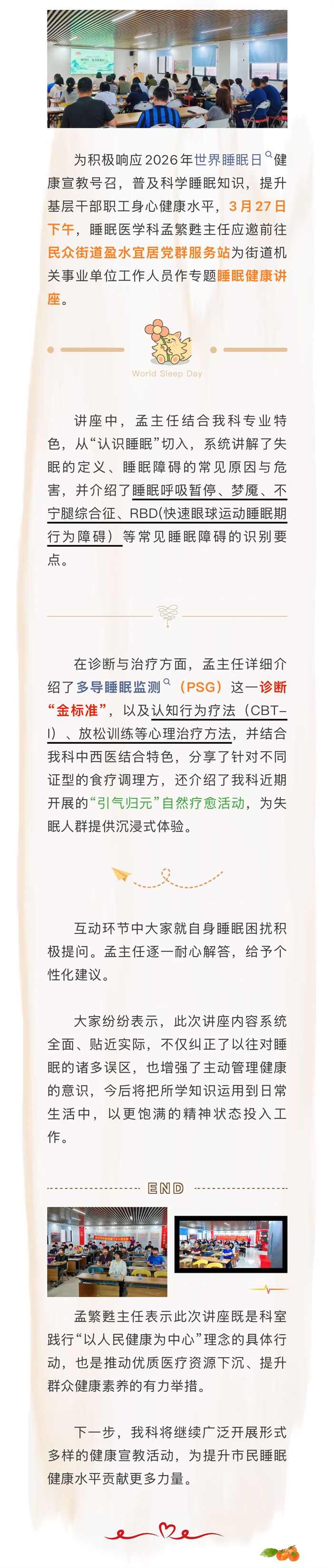 睡出健康力!我科专家这场睡眠讲座干货满满