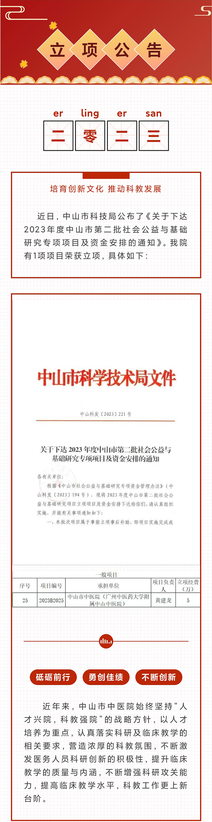 立项丨我院1项课题获2023年度中山市第二批社会公益与基础研究专项项目立…