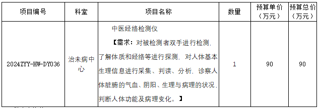 中山市中医院中医经络检测仪采购项目市场调研公告
