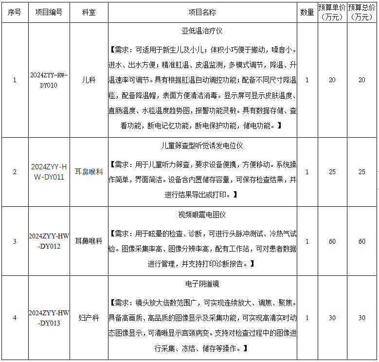 中山市中医院十万元以下医疗设备及服务项目采购信息公告(二)