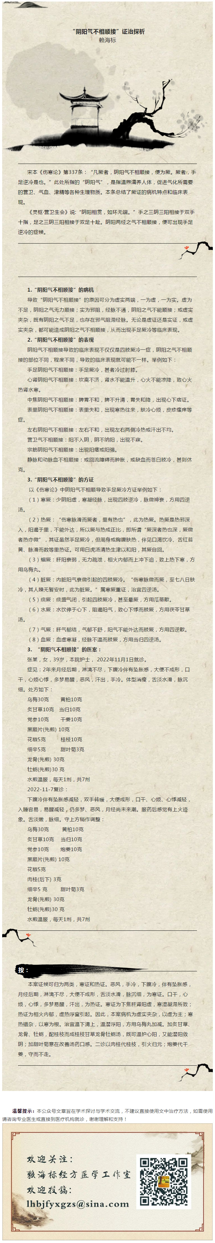 “阴阳气不相顺接”证治探析